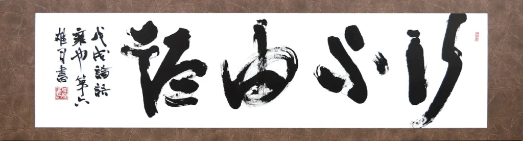 諸橋轍次博士は、新潟県三条市(旧下田村)のご出身で、世界を代表する漢学者であり、前人未到の大著『大漢和辞典』の編者であります。その偉業は周知の通りですが、一方で博士は“教育者”であるという自負を生涯持ち続けられ、多くの優秀な後進を育成されたことも見逃してはならない功績の一つです。博士は主に東洋哲学の観点から、折に触れ縦横自在に持論を展開されました。 本展は拙筆に乗せて、博士の深遠な世界観の一端を皆様と共有したいと思いを込めた企画になっています。15点ほどのわずかな展示ですが、作品脇の釈文やエピソードとともにご鑑賞いただけるとより楽しめるのではないかと思います。